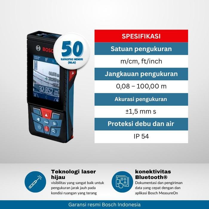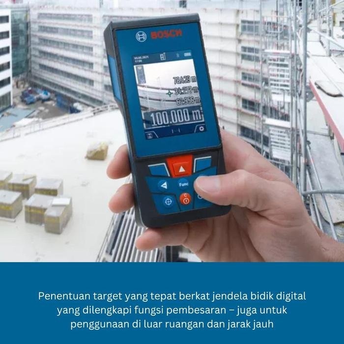 Bosch GLM 150 C adalah alat pengukur jarak laser profesional dengan jangkauan hingga 150 meter dan akurasi tinggi mencapai ±1,5 mm. Dilengkapi dengan layar warna IPS 2,8 inci serta kamera digital dengan fungsi zoom, alat ini memudahkan pengguna membidik target pada jarak jauh, bahkan di area terang.