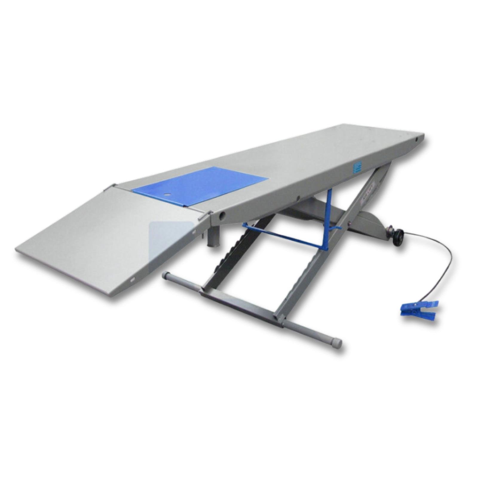 Meja Angkat Motor Pneumatic / Hydraulic 500 kg (model AL-243612) adalah lift motor profesional dengan kapasitas hingga 500 kg dan ketinggian angkat hingga sekitar 800 mm. Meja ini dilengkapi dengan vise roda depan yang bisa diatur, silinder angkat udara tunggal, ramp lepas, dan bagian belakang yang dapat dilepas (“cut-out”) untuk akses roda belakang — sangat cocok untuk bengkel maupun hobi.