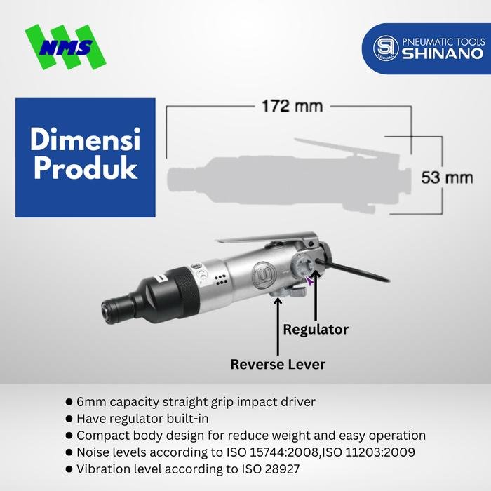 Shinano SI-1052 adalah obeng impak udara berukuran 1/4 inci yang dirancang dengan bodi ringan dan kecepatan tinggi untuk pekerjaan perakitan presisi.