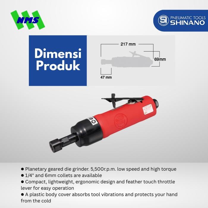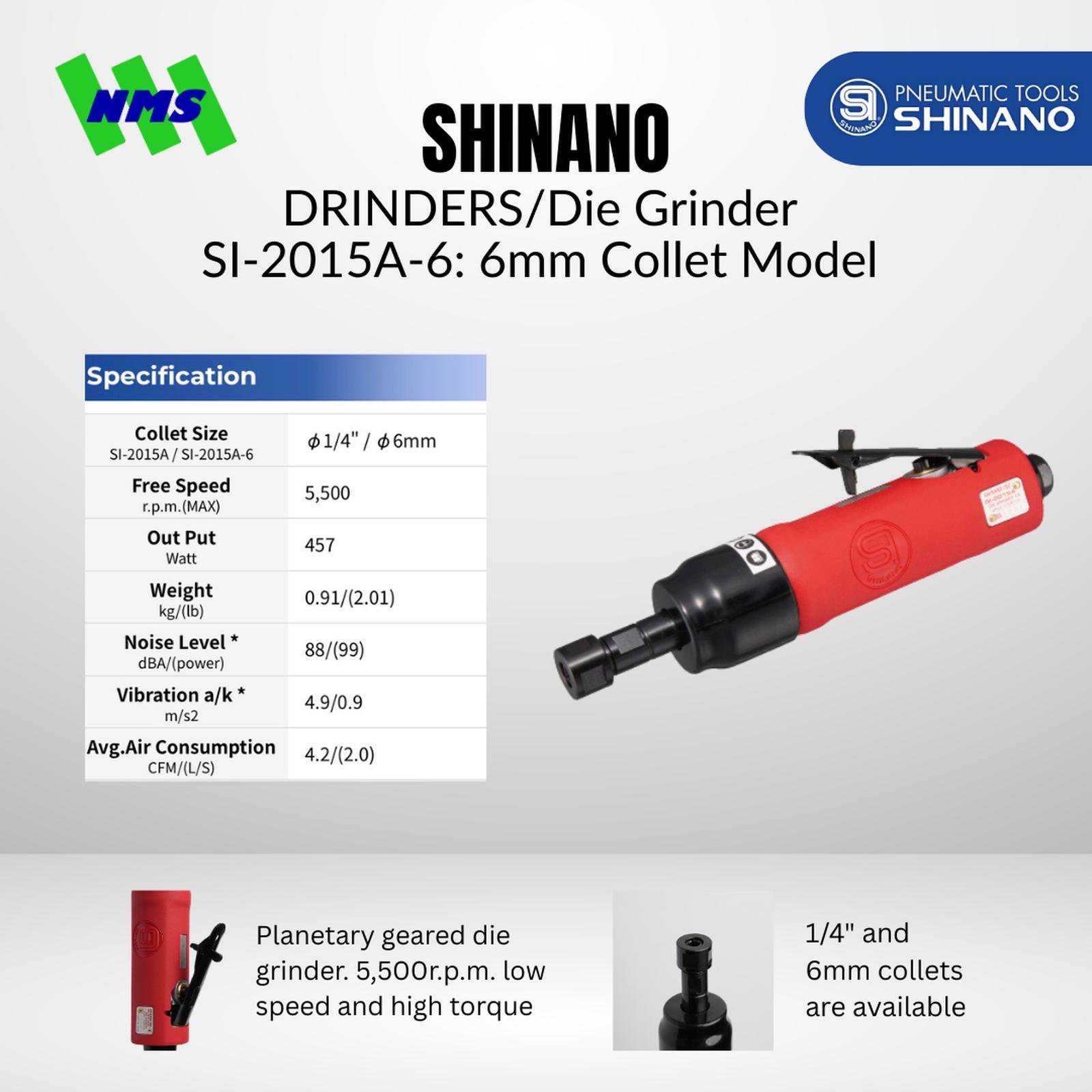 Shinano SI-2015A adalah gerinda angin sudut (air angle die grinder) berukuran kompak dengan kecepatan tinggi hingga 20.000 rpm.