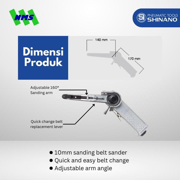 Shinano SI-2700 adalah air belt sander berukuran kompak yang dirancang untuk pekerjaan finishing, deburring, dan sanding ringan pada logam, kayu, maupun plastik.