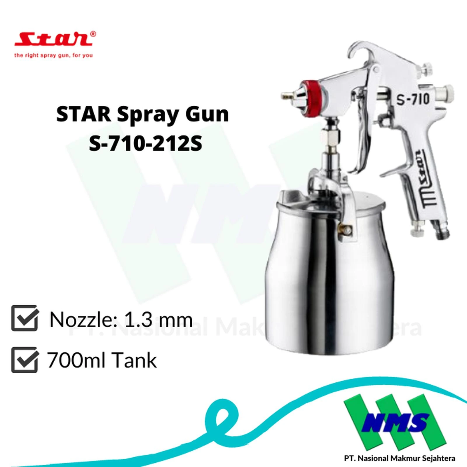 STAR Spray Gun S-710-212S adalah alat semprot cat tipe suction (tabung bawah) yang dirancang untuk memberikan hasil atomisasi halus dan finishing profesional. Dilengkapi nozzle berukuran 1.3 mm serta tangki berkapasitas 700 ml, spray gun ini cocok digunakan untuk berbagai aplikasi pengecatan, terutama di bidang otomotif dan industri.