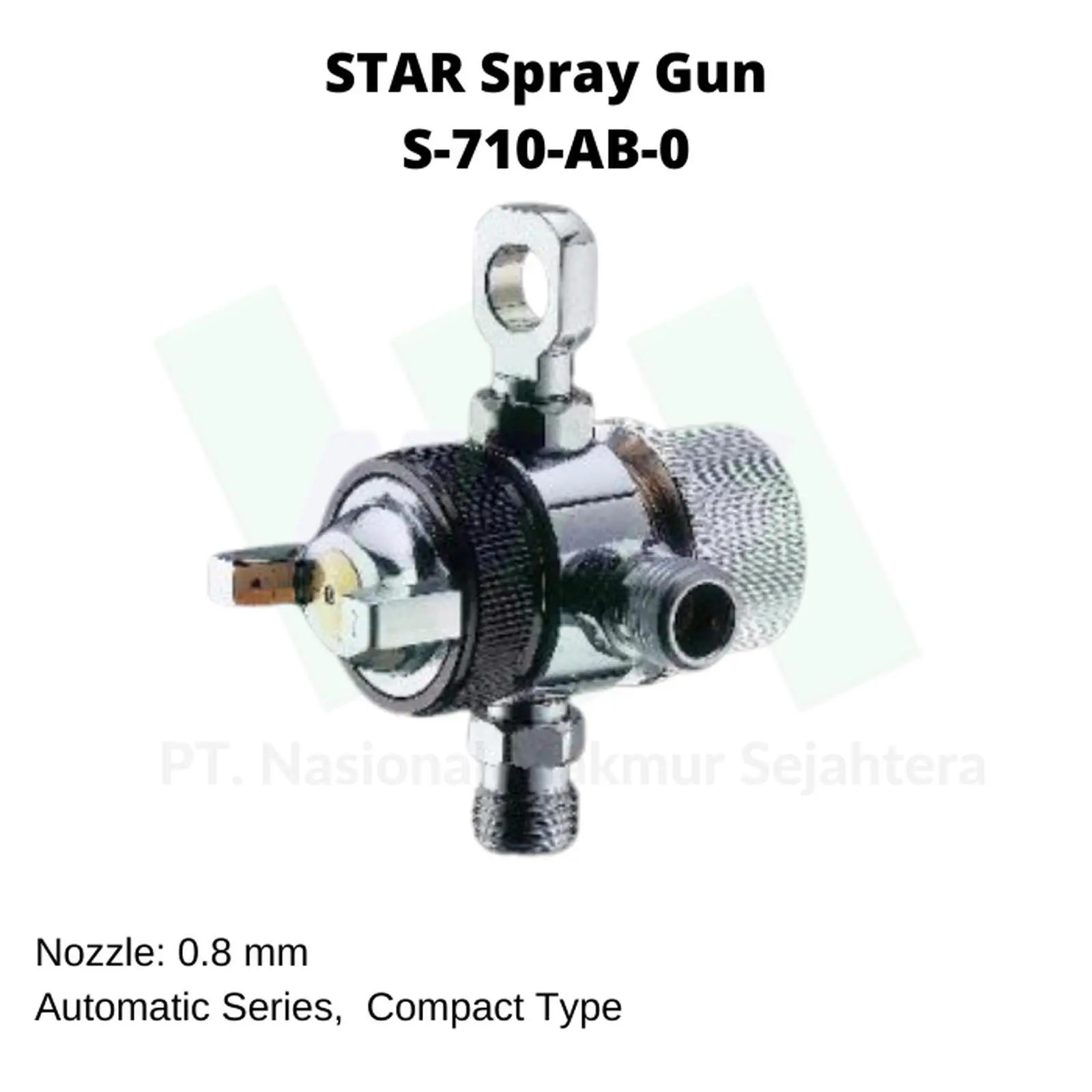 STAR Spray Gun S-710-AB-0 adalah spray gun otomatis dari seri S-710-AB yang dirancang untuk aplikasi produksi massal. Dilengkapi nozzle 0,8 mm, alat ini ideal untuk semprotan cat presisi dengan tekanan atomisasi sekitar 2,5–3,5 bar. Konstruksinya mendukung pemasangan pada lini produksi otomatis, dengan inlet udara dan cat berukuran 1/4″ PF/NPS.