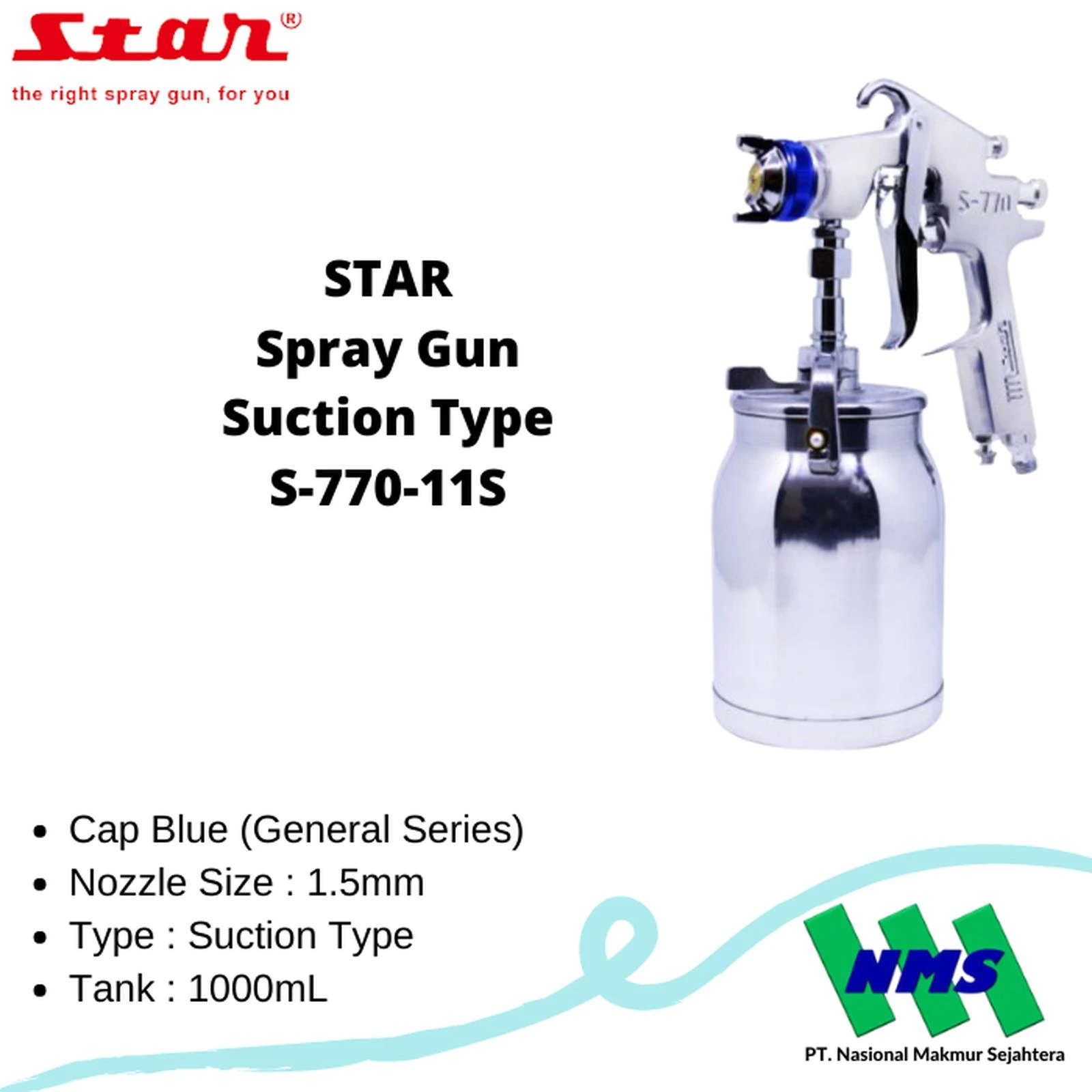 STAR Spray Gun Suction Type S-770-11S adalah pistol semprot cat profesional dengan sistem suction feed (tabung bawah) yang dirancang untuk hasil pengecatan halus dan merata. Dilengkapi nozzle berukuran 1,5 mm dan pot berkapasitas 1000 ml, alat ini ideal digunakan untuk berbagai aplikasi industri seperti otomotif, furnitur, dan pekerjaan pelapisan skala besar.