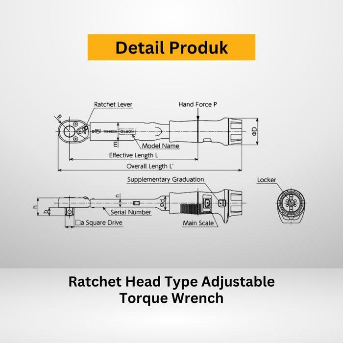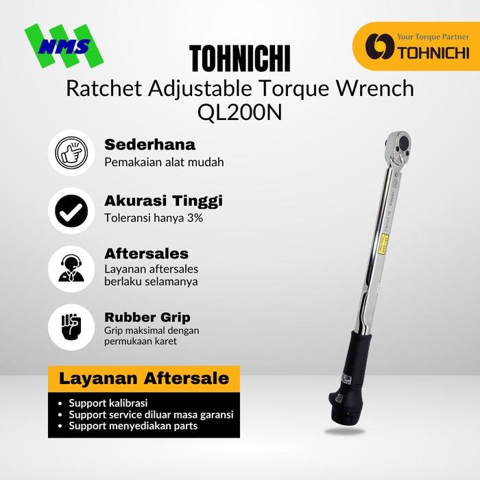 Kunci Torsi TOHNICHI QL200N 1/2″ (40–200 Nm) merupakan kunci torsi tipe klik yang dapat disetel dengan presisi tinggi.