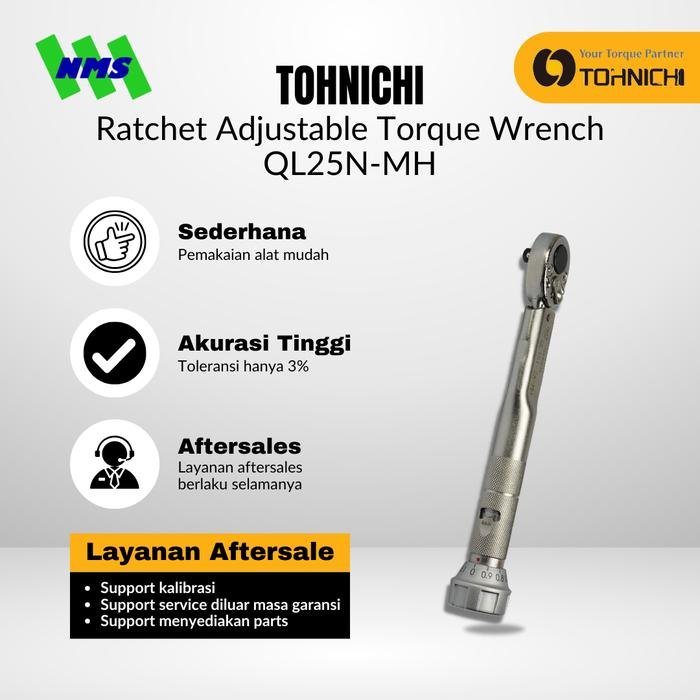 Tohnichi QL25N-MH adalah kunci torsi tipe “click” buatan Jepang, digunakan untuk mengencangkan baut dengan torsi presisi. Alat ini cocok untuk otomotif, perakitan mesin, dan perawatan umum, karena ringan, akurat, dan mudah digunakan.